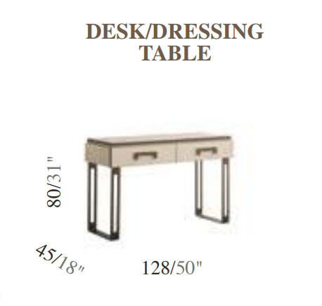 Pisa desk is a beautiful and functional solution for your bedroom or home office. It features an elegant design combining matt brown metal handles & legs, a beige high gloss main body with a marble effect glass top. The desk features two drawers for your stationary or papers.