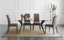 Elevate your space with the timeless allure of the TOKYO table. Crafted with a solid wood base and rounded edges, it seamlessly blends classic design with modern sophistication. Choose between a sleek rectangular glass or glass-ceramic top, adorned with a distinctive "X"-shaped arrangement of four slanted legs, joined by a central metal connecting element. Whether hosting a gathering of 6 or 8, the TOKYO table ensures comfort and style for all, making it a perfect addition to any space, from casual dining to professional studios.