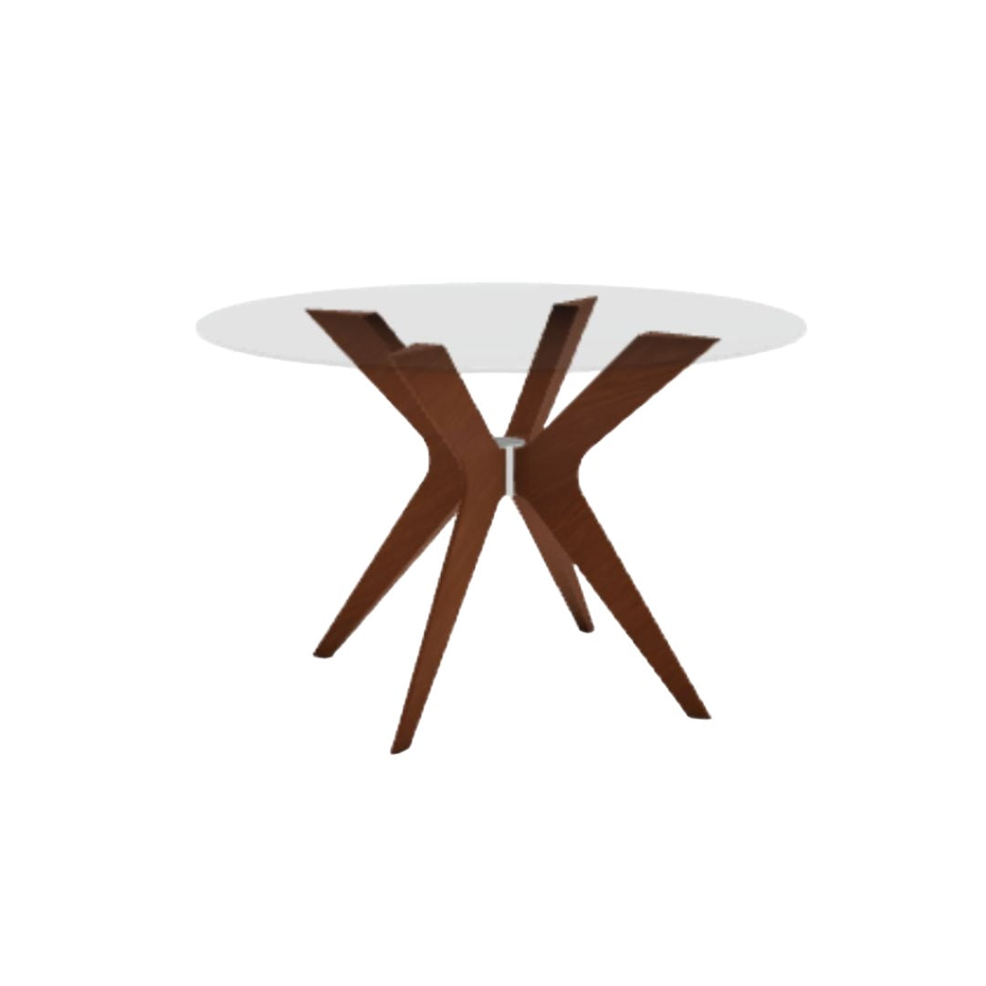 - Unique "X" Design: The four slanted legs of the table form an "X" shape, joined by a central side member through metal connecting elements, creating a visually striking and sturdy base.